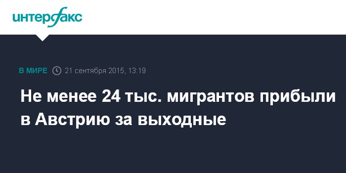 Москва. 21 сентября. INTERFAX.RU - Не менее 24 тыс. беженцев прибыли за выходные в Австрию, сообщают западные СМИ.