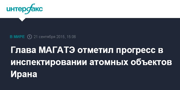 Москва. 21 сентября. INTERFAX.RU - Глава Международного агентства по атомной энергии (МАГАТЭ) Юкия Амано заявил в понедельник о существенном прогрессе в проверке утверждений о том, что Иран стремился в прошлом создать ядерное оружие.