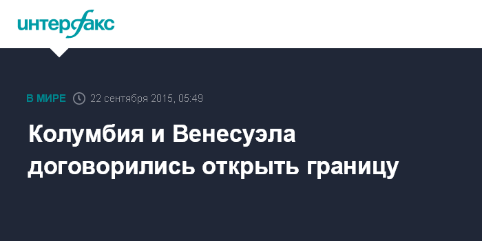Москва. 22 сентября. INTERFAX.RU - Президент Колумбии Хуан Мануэль Сантос и его венесуэльский коллега Николас Мадуро на саммите в Эквадоре согласились поэтапно открыть границу между двумя странами, передает BBC News.