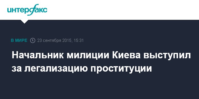 Москва. 23 сентября. INTERFAX.RU - Начальник ГУ МВД Украины в Киеве Александр Терещук считает целесообразным легализовать проституцию, хотя в целом является противником этого явления.