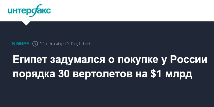 Египет задумался о покупке у России порядка 30 вертолетов на $1 млрд