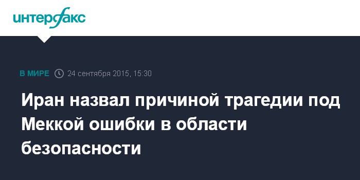 Москва. 24 сентября. INTERFAX.RU - Власти Саудовской Аравии допустили недочеты в сфере безопасности, что привело в четверг к гибели сотен людей в давке во время хаджа, утверждают в Иране.