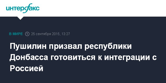 Москва. 25 сентября. INTERFAX.RU - Самопровозглавшенные Донецкая и Луганская народные республики должны быть готовы к интеграции с РФ, заявил председатель Народного совета самопровозглашенной Донецкой народной республики Денис Пушилин.