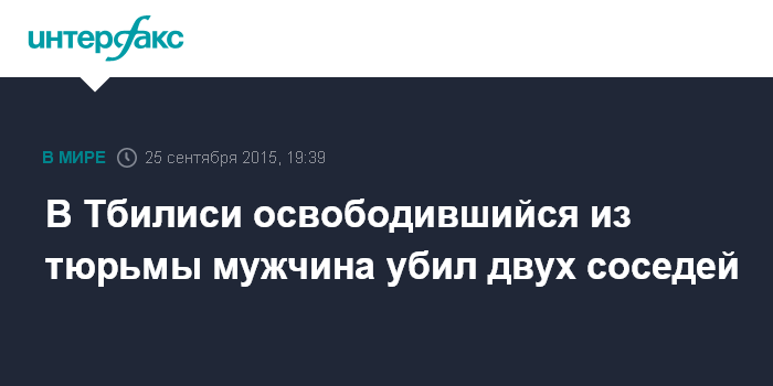 Москва. 25 сентября. INTERFAX.RU - В Тбилиси в пятницу произошло двойное убийство. Как сообщают грузинские СМИ, два человека были застрелены во дворе одного из жилых корпусов в районе Мухиани.
