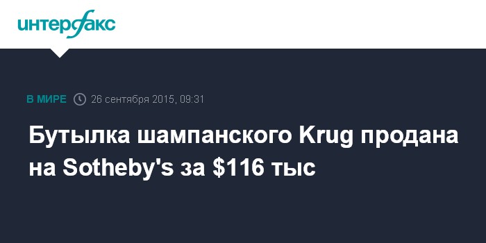 Бутылка шампанского Krug продана на Sotheby's за $116 тыс