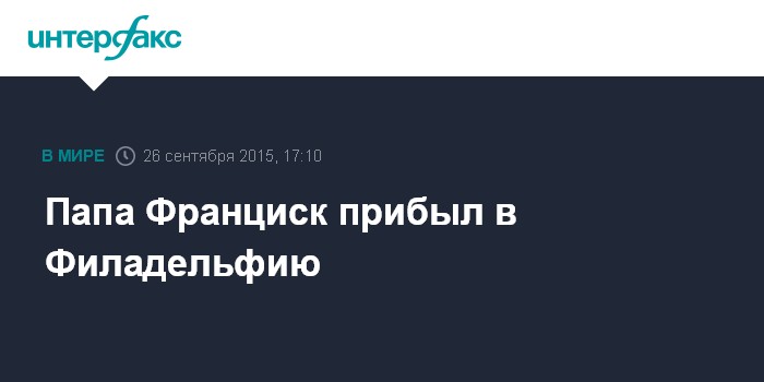 Москва. 26 сентября. INTERFAX.RU - Папа римский Франциск в субботу прибыл в Филадельфию, где завершит свою поездку по Соединенным Штатам, передает агентство AP.