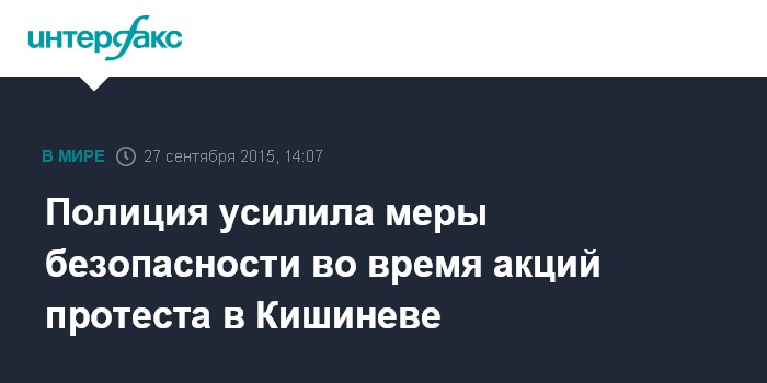 Москва. 27 сентября. INTERFAX.RU - Несколько тысяч молдавских полицейских обеспечивают порядок на акциях протеста, которые проходят в воскресенье в Кишиневе, сообщил начальник кишиневского Инспектората полиции Мариан Максиан.