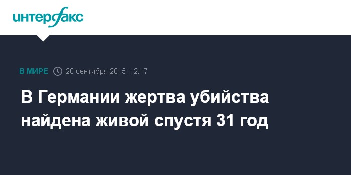 Москва. 28 сентября. INTERFAX.RU - Полиция Германии обнаружила, что считавшаяся убитой с 1989 года женщина на самом деле жива, сообщает издание Bild.