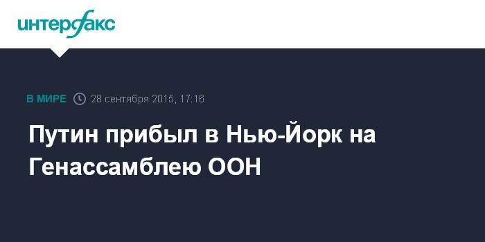 Москва. 28 сентября. INTERFAX.RU - Президент РФ Владимир Путин прибыл в Нью-Йорк для того, чтобы выступить на пленарном заседании 70-й сессии Генеральной Ассамблеи ООН.