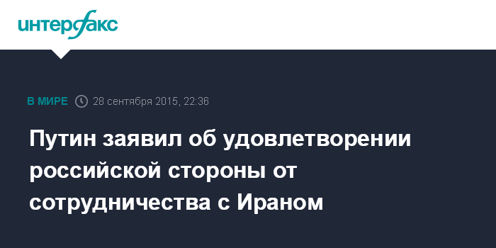 "Что касается нашего взаимодействия, то мы удовлетворены им в высшей степени и на международной арене, и в борьбе с терроризмом, в сфере безопасности", - сказал Путин в ходе встречи в Нью-Йорке с президентом Ирана Хасаном Рухани.