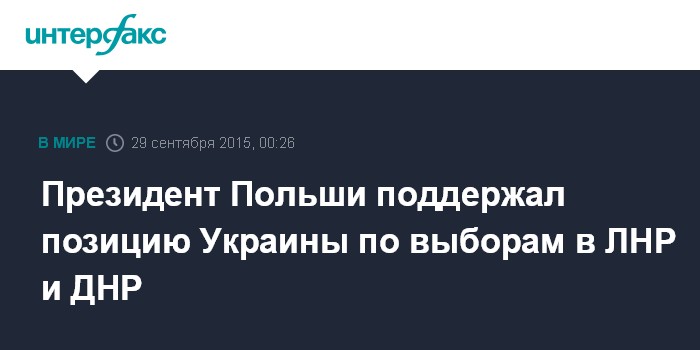 Москва. 29 сентября. INTERFAX.RU - Киев получил поддержку от президента Польши в вопросе о проведении выборов в самопровозглашенных Луганской и Донецкой народных республиках.