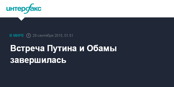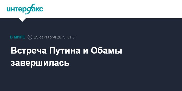 Москва. 29 сентября. INTERFAX.RU - Встреча президентов России и США Владимира Путина и Барака Обамы закончилась, она длилась почти в два раза дольше запланированного времени.