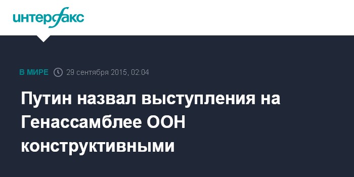 Москва. 29 сентября. INTERFAX.RU - Выступления лидеров на ГА ООН были конструктивными, своевременными и интересными, заявил президент РФ Владимир Путин.