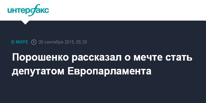 Москва. 30 сентября. INTERFAX.RU - Президент Украины Петр Порошенко заявил, что мечтает после своего президентского срока стать депутатом Европарламента от Украины.