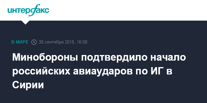 "В соответствии с решением верховного главнокомандующего Вооруженными силами РФ Владимира Путина самолеты российских Воздушно-космических сил (ВКС) сегодня приступили к проведению воздушной операции с нанесением точечных ударов по наземным целям террористов группировки ИГИЛ на территории Сирийской арабской республики", - сказал он.