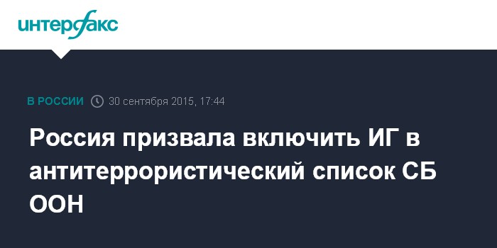 Москва. 30 сентября. INTERFAX.RU - Глава МИД РФ Сергей Лавров с трибуны СБ ООН в среду призвал включить ИГИЛ в антитеррористический санкционный список Совета.