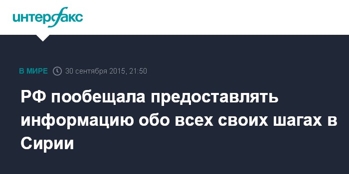 РФ пообещала предоставлять информацию обо всех своих шагах в Сирии