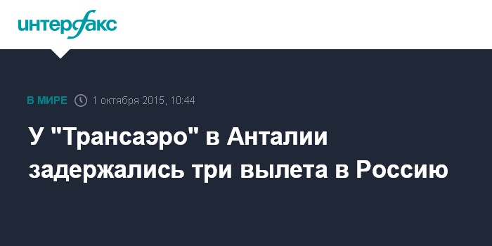 Москва. 1 октября. INTERFAX.RU - Аэропорт турецкого города Анталия в четверг утром не выпускает три чартерных рейса российской авиакомпании "Трансаэро" в Москву, Омск и Екатеринбург.
