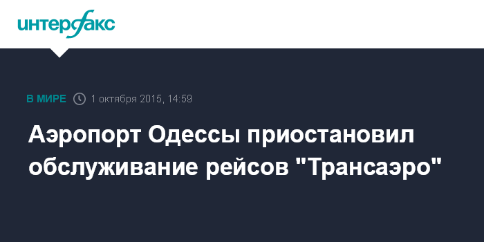 Москва. 1 октября. INTERFAX.RU - Международный аэропорт "Одесса" в четверг приостановил обслуживание рейсов авиакомпании "Трансаэро".