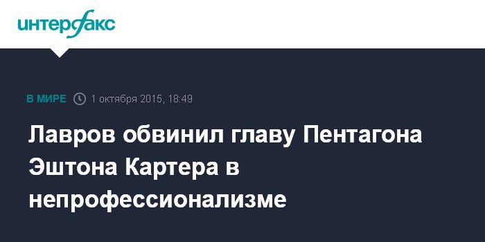 Москва. 1 октября. INTERFAX.RU - Глава МИД РФ Сергей Лавров на пресс-конференции в Нью-Йорке назвал непрофессиональными заявления главы Пентагона Эштона Картера о действиях России в Сирии.