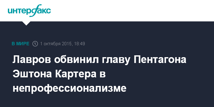 Лавров обвинил главу Пентагона Эштона Картера в непрофессионализме