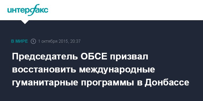 Председатель ОБСЕ призвал восстановить международные гуманитарные программы в Донбассе