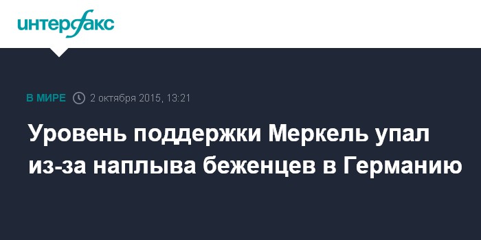 Москва. 2 октября. INTERFAX.RU - Все больше немцев обеспокоены рекордным наплывом мигрантов в страну, из-за этой проблемы падает уровень поддержки канцлера ФРГ Ангелы Меркель, свидетельствуют опубликованные в пятницу результаты проведенного телерадиокомпанией ARD опроса.