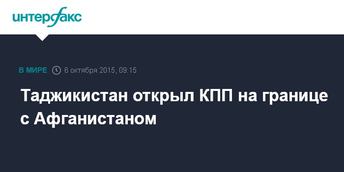 Москва. 6 октября. INTERFAX.RU - На таджикско-афганской границе возобновили работу все три контрольно-пропускных пункта (КПП), которые были закрыты 28 сентября после нападения талибов на Кундуз, сообщил журналистам во вторник пресс-секретарь Главного погрануправления (ГПУ) Госкомитета нацбезопасности (ГКНБ) Таджикистана Мухаммад Улугходжаев.