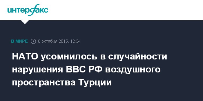 Москва. 6 октября. INTERFAX.RU - Нарушение российскими боевыми самолетами воздушного пространства Турции в минувшие выходные, по мнению НАТО, не является случайностью, заявил во вторник генсек Североатлантического альянса Йенс Столтенберг.