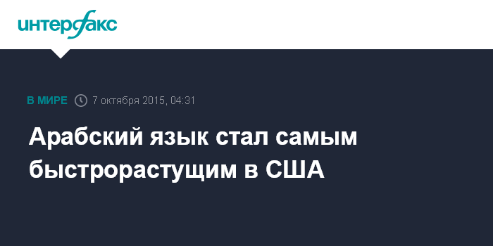 Москва. 7 октября. INTERFAX.RU - Согласно данным Бюро переписи населения США, арабский язык и пакистанский язык - урду имеют наибольшие темпы распространения среди жителей страны, пишет портал Breitbart.
