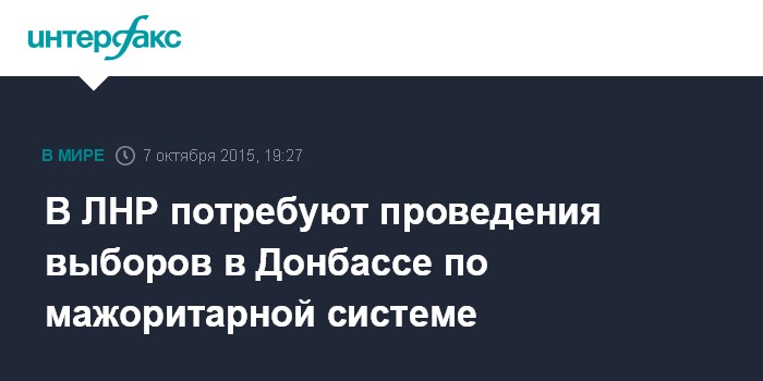 Москва. 7 октября. INTERFAX.RU - Власти самопровозглашенной Луганской народной республики будут настаивать на включении в специальный закон о выборах в Донбассе, который в рамках Минских соглашений должна принять Украина, пункта об их проведении по мажоритарной системе, заявил участник рабочей подгруппы по политическим вопросам Родион Мирошник.