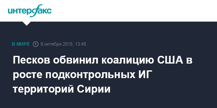 Песков обвинил коалицию США в росте подконтрольных ИГ территорий Сирии