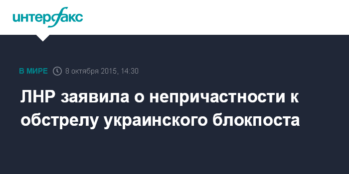 ЛНР заявила о непричастности к обстрелу украинского блокпоста