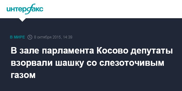 Москва. 8 октября. INTERFAX.RU - В ходе заседания парламента Косово в Приштине группа парламентариев взорвала дымовую шашку со слезоточивым газом, пишут в четверг западные СМИ.