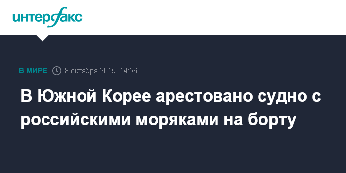 В Южной Корее арестовано судно с российскими моряками на борту