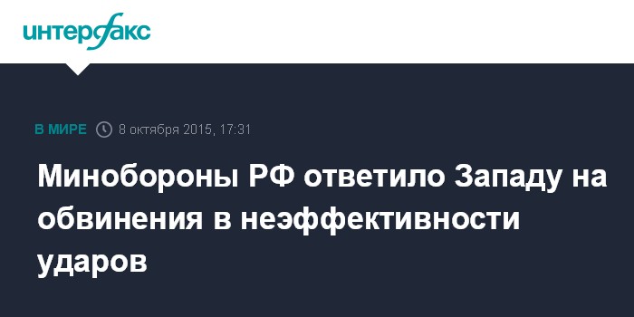 Москва. 8 октября. INTERFAX.RU - Официальный представитель Минобороны России генерал-майор Игорь Конашенков в ответ на обвинения зарубежных чиновников в неэффективности ударов российской группировки по позициям ИГ в Сирии заявил, что действия стран Запада в регионе являются нерезультативными.