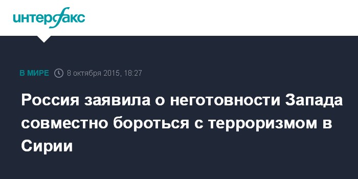 Россия заявила о неготовности Запада совместно бороться с терроризмом в Сирии