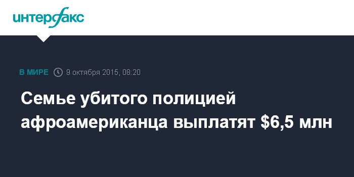 Семье убитого полицией афроамериканца выплатят $6,5 млн