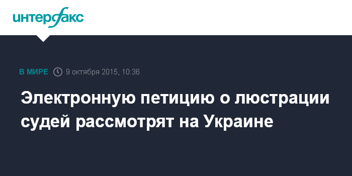 Москва. 9 октября. INTERFAX.RU - Размещенная на официальном сайте президента Украины электронная петиция о люстрации прокуроров и судей, а также о публикации результатов этого процесса, собрала необходимое для рассмотрения в органах власти количество голосов - более 25 тыс.