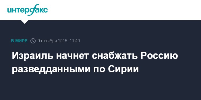 Москва. 9 октября. INTERFAX.RU - Израильские военные будут предоставлять России разведывательную информацию о позициях группировок сирийской оппозиции, сообщил в пятницу местный телеканал Channel 2TV, ссылаясь на источники в Армии обороны Израиля.