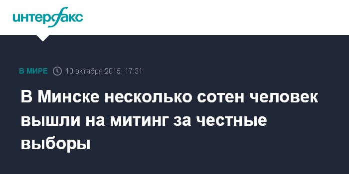 Москва. 10 октября. INTERFAX.RU - Не санкционированная белорусскими властями акция оппозиции "За свободные справедливые выборы" началась в центре Минска. Ее организаторы призывают к бойкоту президентских выборов, сообщает корреспондент агентства "Интерфакс".