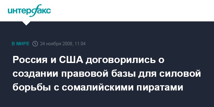 Как сообщил журналистам помощник президента РФ Сергей Приходько, "оба президента договорились о необходимости начала работы в Совете Безопасности ООН по созданию правовой базы для применения совместных силовых мер против сомалийских пиратов".