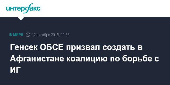 Генсек ОБСЕ призвал создать в Афганистане коалицию по борьбе с ИГ
