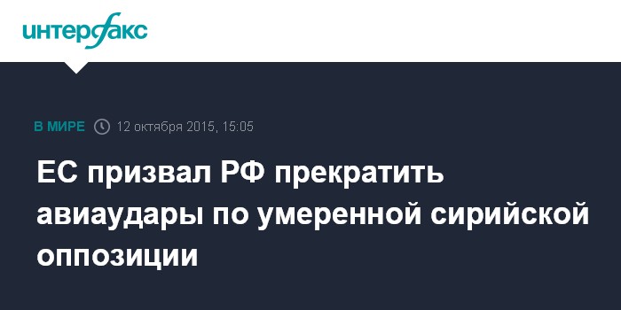 Москва. 12 октября. INTERFAX.RU - Удары ВКС РФ в Сирии направлены не только против террористов, но и против умеренной оппозиции, поэтому они должны быть немедленно прекращены, говорится в заявлении по итогам заседания Совета министров иностранных дел стран ЕС.