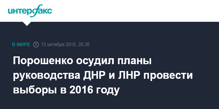 Москва. 12 октября. INTERFAX.RU - Президент Украины Петр Порошенко на встрече с американскими сенаторами осудил планы руководства ДНР и ЛНР провести выборы в 2016 году.