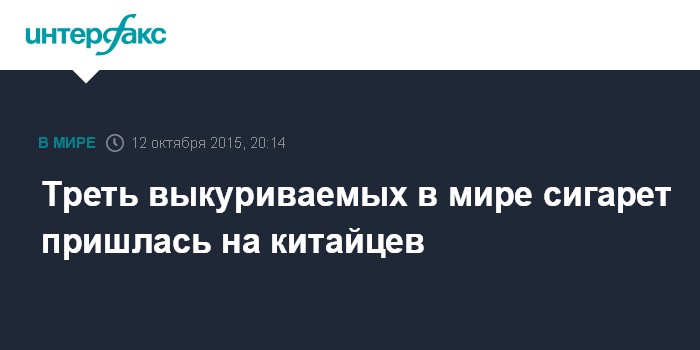 Треть выкуриваемых в мире сигарет пришлась на китайцев