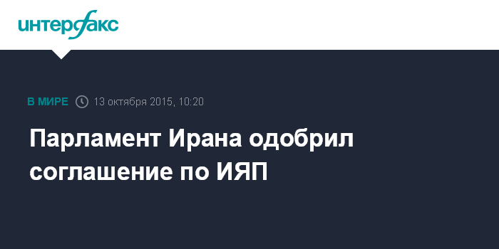 Москва. 13 октября. INTERFAX.RU - Иранский парламент во вторник одобрил законопроект о реализации соглашения Тегерана с "шестеркой" международных посредников по иранской ядерной программе (ИЯП), сообщает иранское агентство ИРНА.
