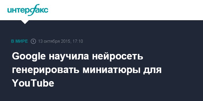 Москва. 13 октября. INTERFAX.RU - Исследователи из Google при помощи нейросети научили алгоритм определять наиболее подходящий кадр для создания миниатюры ролика на Youtube, сообщает сайт N+1.