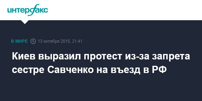 Москва. 13 октября. INTERFAX.RU - Министерство иностранных дел Украины заявило решительный протест в связи с запретом на въезд в Россию сестре арестованной в РФ украинки Надежды Савченко и потребовало прекратить произвол в отношении граждан Украины.