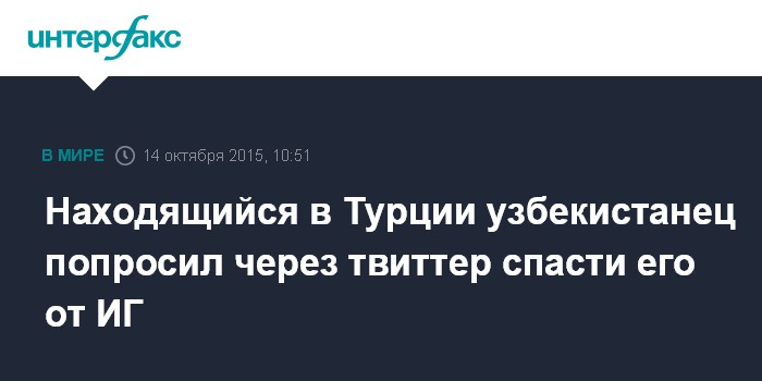 Москва. 14 октября. INTERFAX.RU - Гражданин Узбекистана попросил о помощи через твиттер, утверждая, что его принуждают воевать на стороне террористической группировки "Исламское государство" (ИГ), сообщили в среду местные интернет-издания.